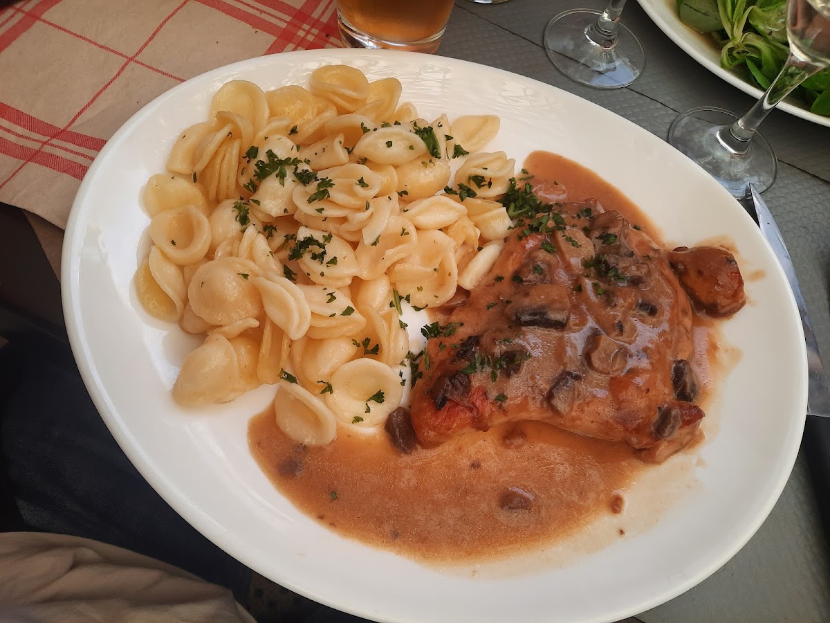 Stopped for lunch after we visited Chenonceu. It was just before 2 pm, but the kind owners sat us. We don't speak French, but she was nice enough to use Google translate on my phone, so we both ordered the chicken with mushroom sauce and spaghetti. It's better than any meal we had in Paris! I'm so glad we stopped at this little hidden gem. $22 euro total for 2 entrees and tap water.
